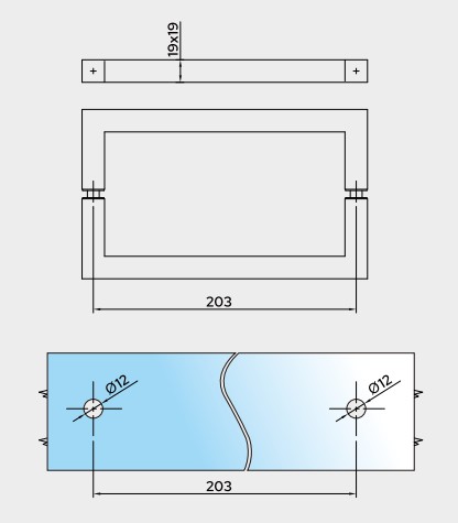 Deurgreep 19 x 19 mm, hoh 203 mm Brushed Gun Metal